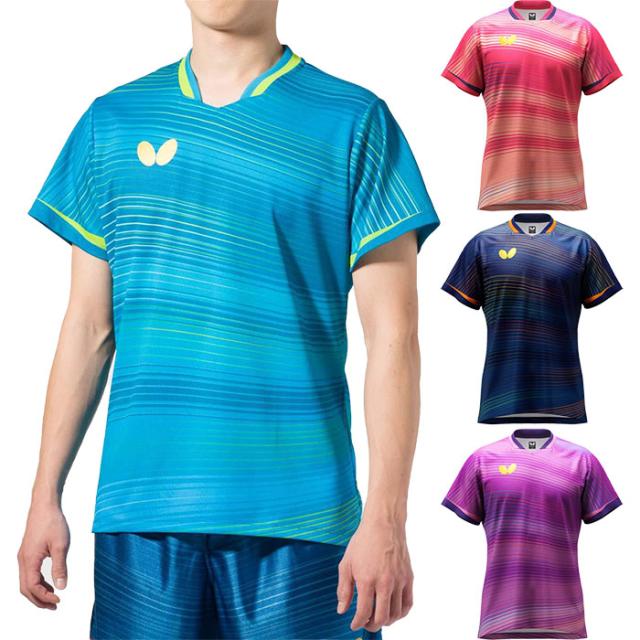 JTTA公認 バタフライ メンズ レディース エリスター11・シャツ 卓球ウェア トップス 半袖 吸水速乾 ストレッチ 軽量 ネイビー ブルー 青 ピンク パープル 紫 送料無料 Butterfly 46510