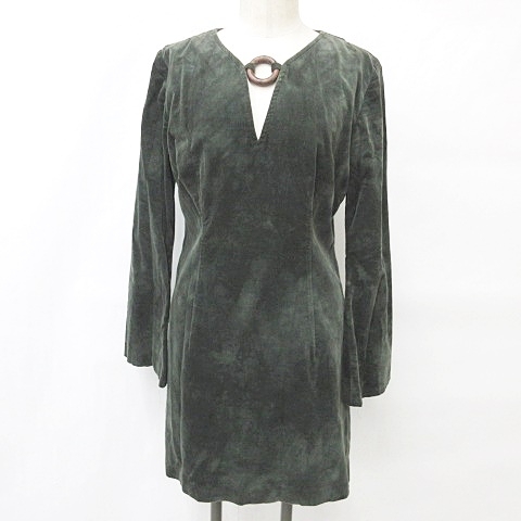 【中古】ノーベスパジオ ワンピース 膝丈 長袖 キーネック リング ベルスリーブ コーデュロイ オリーブ 緑 グリーン 38 レディース