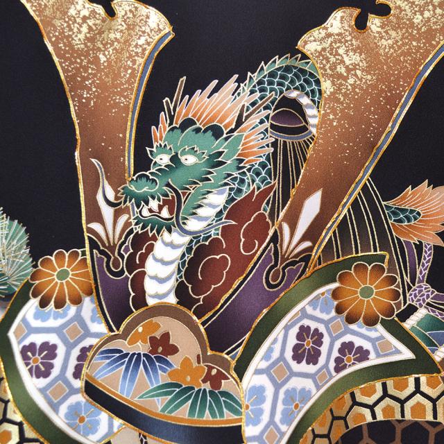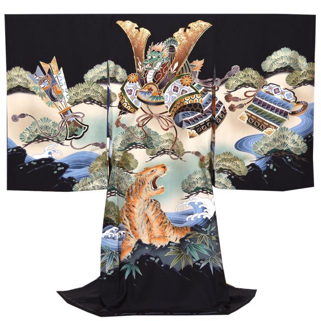 着物に描かれた兜の豪華な飾りは