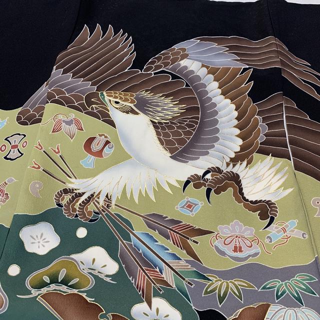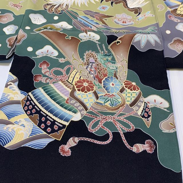 着物に描かれた兜の豪華な飾りは