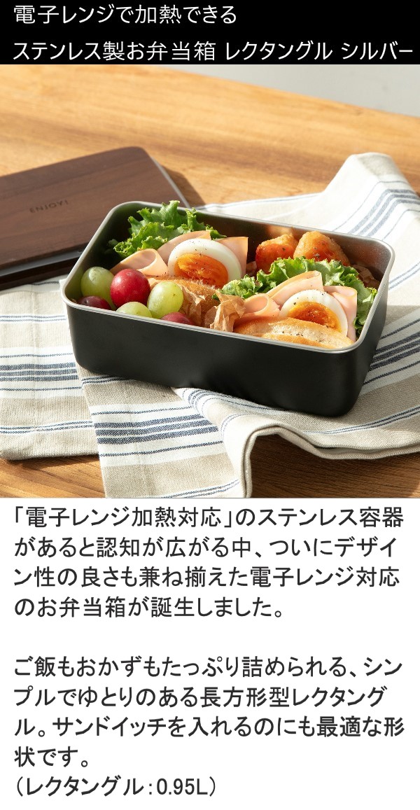 ののじ ステンレスランチボックス レクタングル シルバー NLR0950-SB 送料無料 弁当箱 ステンレス製 電子レンジ対応 食洗器対応