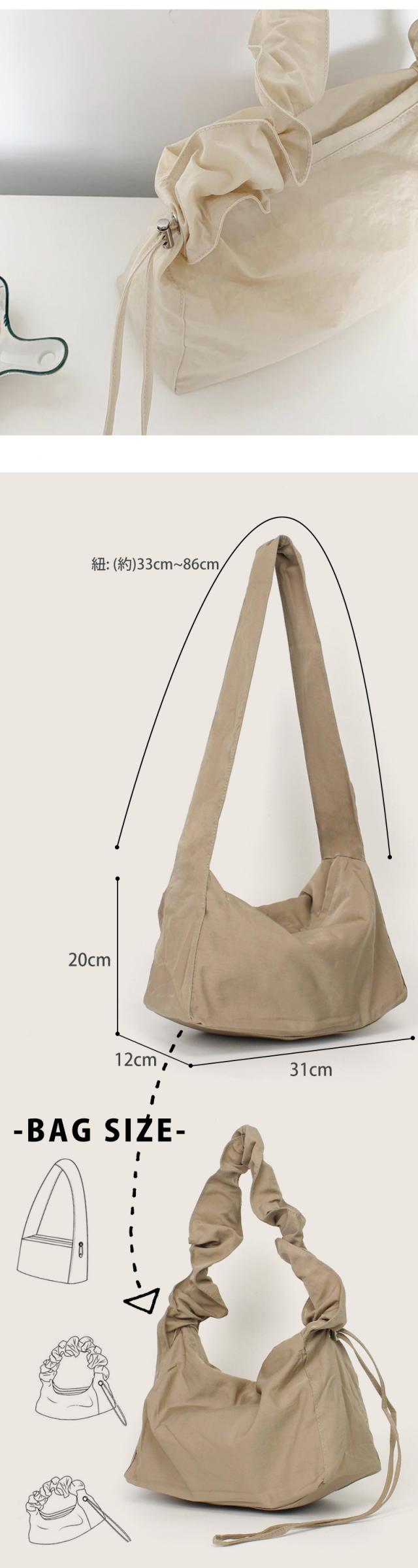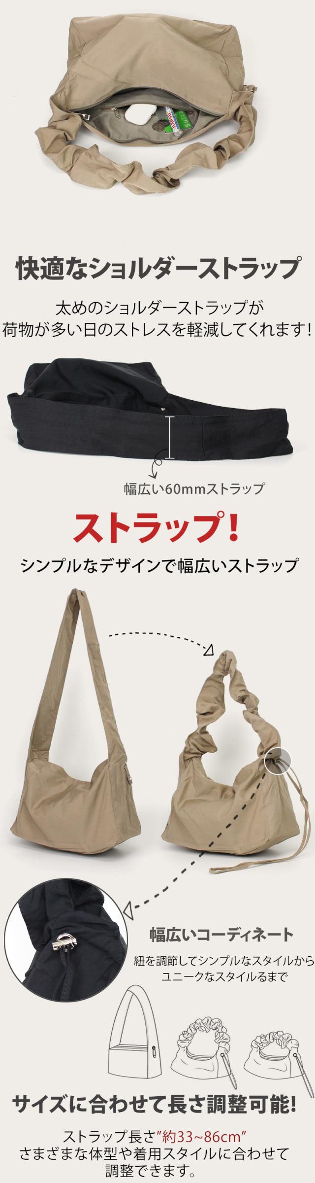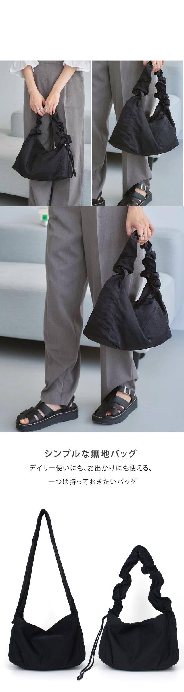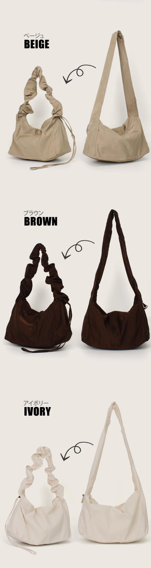 ショルダーバッグ レディース【ギャザーストラップバッグ】斜めがけ 肩掛け オールシーズン ドロストバッグ マザーズバッグ ハンドバッグ シンプル バッグ プリーツ ナイロン 斜め掛け カジュアル 軽量 軽い 大人 くすみカラー