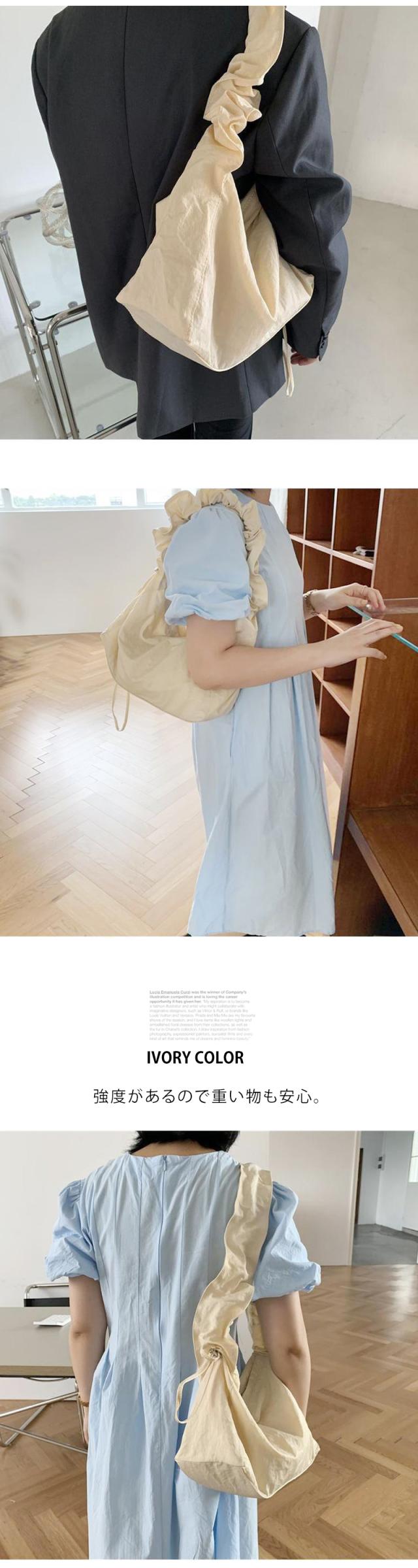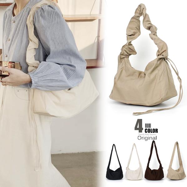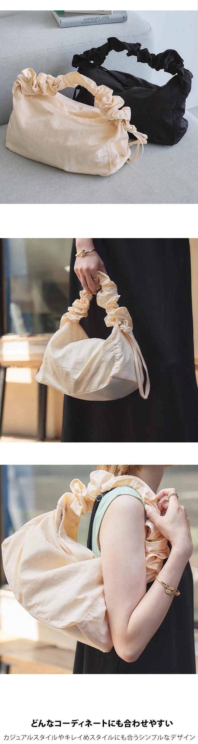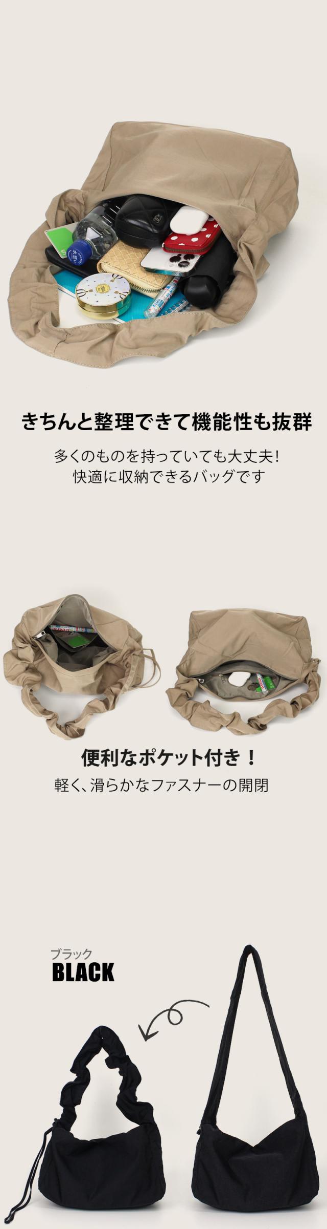 ショルダーバッグ レディース【ギャザーストラップバッグ】斜めがけ 肩掛け オールシーズン ドロストバッグ マザーズバッグ ハンドバッグ シンプル バッグ プリーツ ナイロン 斜め掛け カジュアル 軽量 軽い 大人 くすみカラー