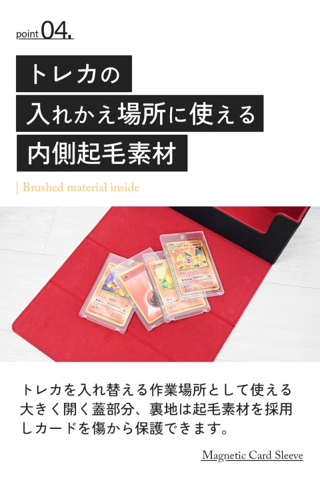 トレカを入れ替える作業場所として使える大きく開く蓋部分。