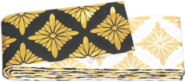 三寸帯 金襴帯 黒地金菊菱 白地金菊菱 両面 日本製 男物 男帯 3寸帯 リバーブル