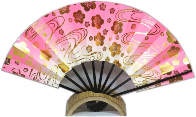 舞扇子 子供扇子≪ピンクぼかし 梅流水柄 テ442≫◇黒竹◇8寸 化粧箱入り 京扇子 扇子 舞扇 子供用