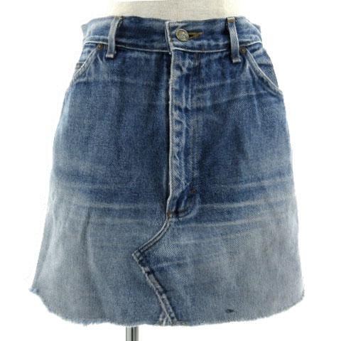 【中古】リー LEE スカート デニム 台形 再構築 ひざ丈 ユーズド加工 裾カットオフ ブルー 青 レディース