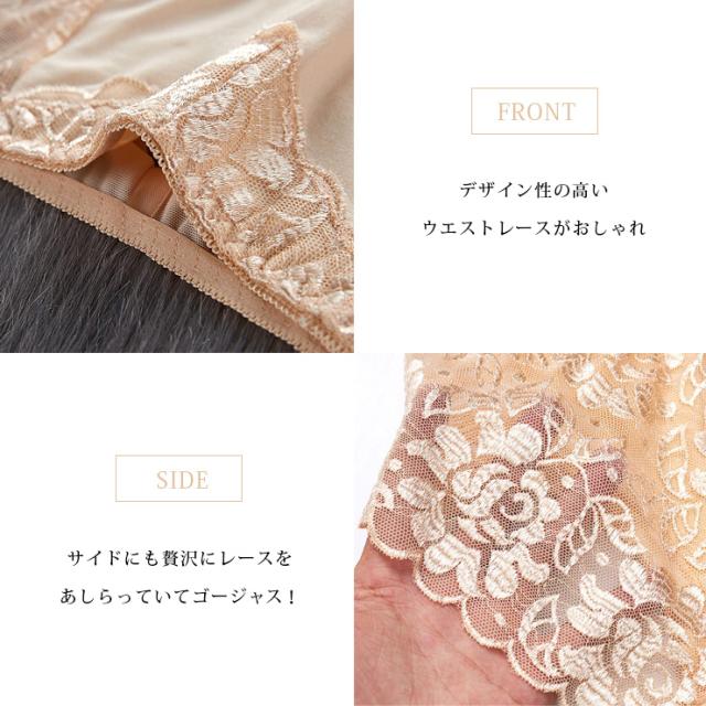| 素材 | (本体)ビスコース95% スパンデックス5% (レース)ナイロン90% スパンデックス10% (クロッチ)ビスコース95% スパンデックス5% 伸縮性あり 透け感なし ※レース部分透け感あり |