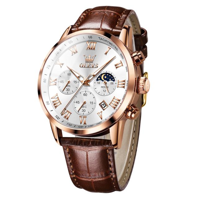 OLEVS 腕時計 メンズ Men Watch シンプル オシャレ 防水うで時計 アナログ ブラウン革ベルト 腕時計メンズ かっこいい 人気ビジネスとけ