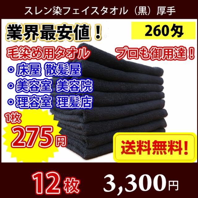 【送料無料】 お試し!12枚 スレン染めフェイスタオル 黒 260匁 厚手 / 床屋 散髪屋 美容室 美容院 理容室 理髪店 毛染め 業務用 ブラック タオル フェイス スレン染め まとめ買い