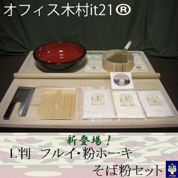 L判そば打ち道具一式・フルイ・粉ホーキ・そば粉セット (極上石臼一本挽き)(そば打ちセット) オフィス木村it21