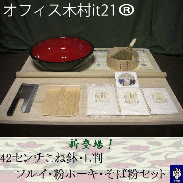 42センチこね鉢・L判そば打ち道具一式・フルイ・粉ホーキ・そば粉セット(極上石臼一本挽き) (そば打ちセット) オフィス木村it21