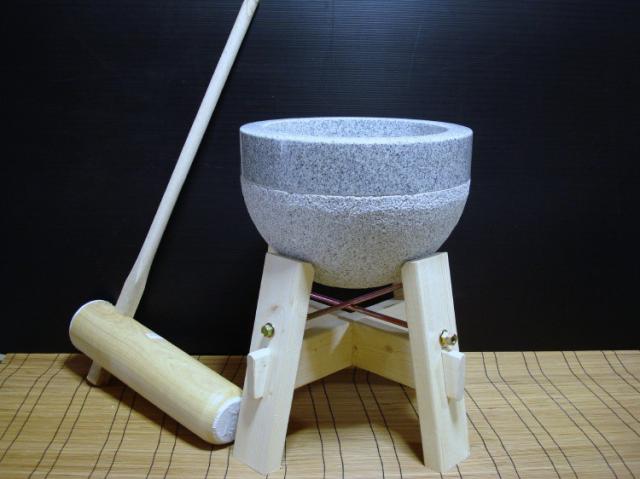 餅つき臼 御影石 鉢型3升用 専用木台・杵Sセット オフィス木村it21