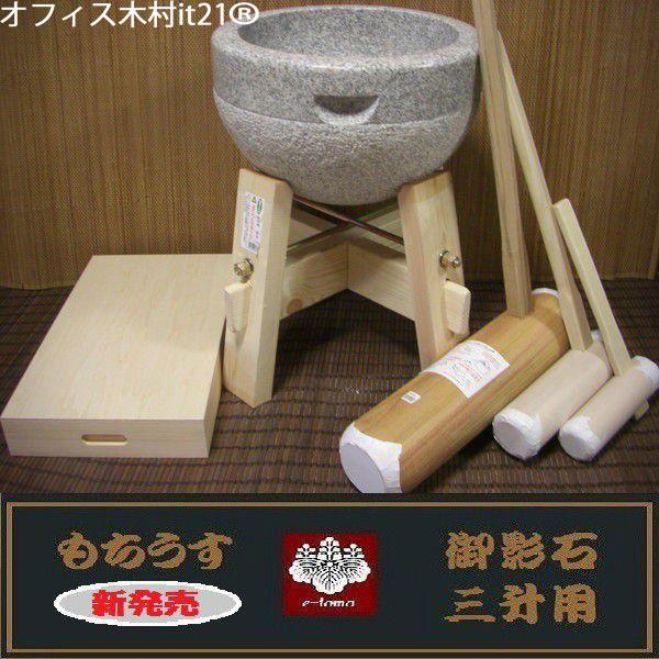 餅つき道具 三升用臼 木台・杵L・子供用杵大小2本・餅箱セット オフィス木村it21