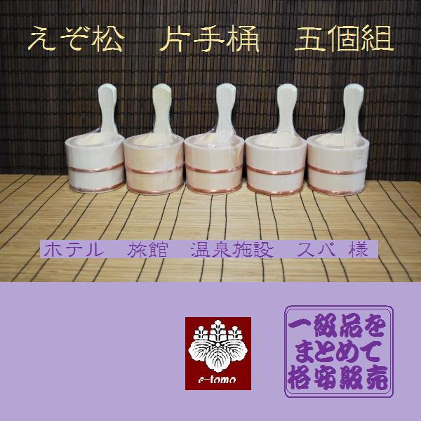 片手湯桶 5個組《日本製》 材質:エゾマツ・銅タガ サイズ:径14cm×取って部高さ23cm・器部高さ11cm