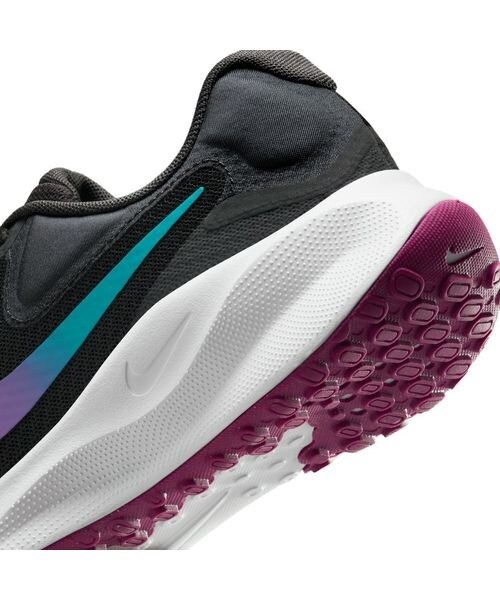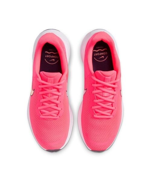 ナイキ ウィメンス゛ レホ゛リューション 7<br />ウィメンズ ロード ランニングシューズ<br />レボリューション 7は、 ランニングの世界を一変するかもしれない、柔らかいクッショニングとサポート性を備えたアイテム。 ラバーが接地する時に快適な履き心地を提供する、これまで以上にスタイリッシュになったシューズ。ファンに人気のアイテムが進化し、必要なパフォーマンスを発揮して柔らかく滑らかな状態が持続します。<br /><br /><b>泡のように軽い履き心地</b><br />フォームミッドソールが、レボリューション 6よりも柔らかい履き心地を提供。 前足部にも少し余裕を持たせ、つま先の締め付けや挟まりを回避。<br /><b>柔らかな肌触り</b><br />ヒールに追加したパフはシューズの外側から見えるデザイン。内側のアキレス腱周りに追加したパフで抜群に快適。 肌触りが柔らかく、履く時に足を気持ち良く圧迫。 シュータンのタッチポイントが、自然な履き心地を提供。<br /><b>しっかりとしたグリップ</b><br />ジェネレーティブデザインによるトラクションパターンと安心感のあるラバーのラグが、上り坂でも下り坂でもグリップ性を発揮。<br />