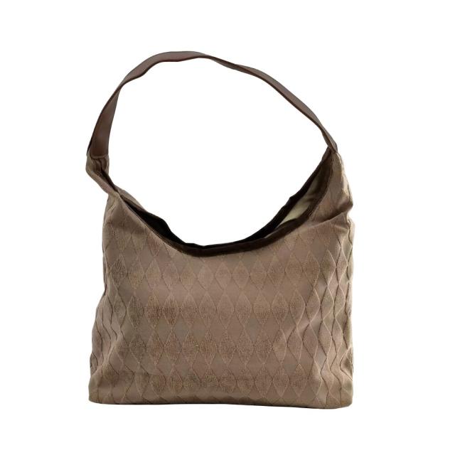 ・ダイヤ柄が可愛い。無地だから派手にならない、質感もしっとり控えめで、さり気ない優しさを感じさせられるバッグ。