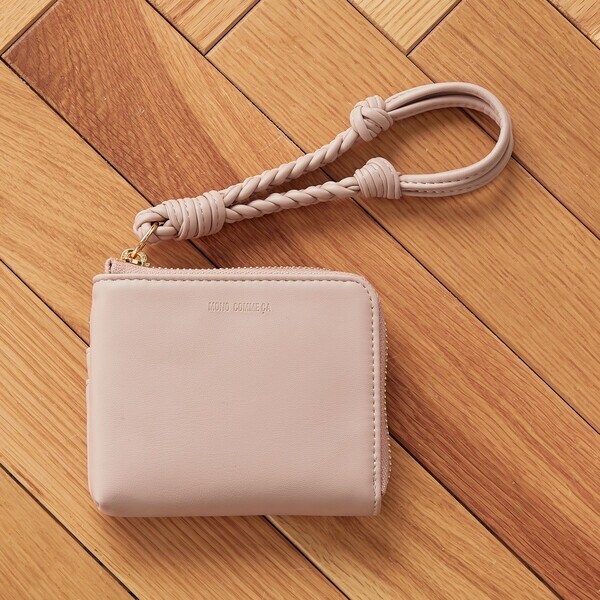 ・編み込みのストラップがトレンドデザインのミニ財布。