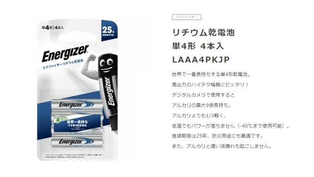 LAAA4PKJP 世界一長持ちする乾電池 リチウム乾電池!