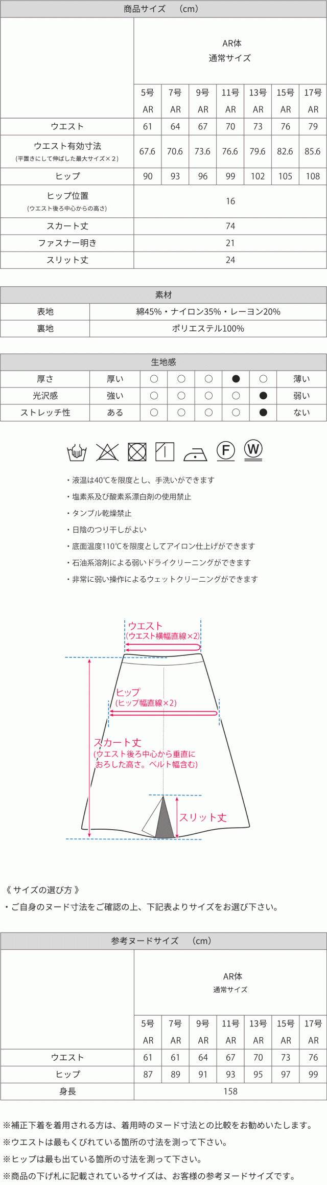 | 洗える ウエストゴム 裾スリット | |