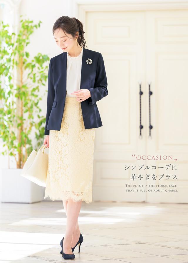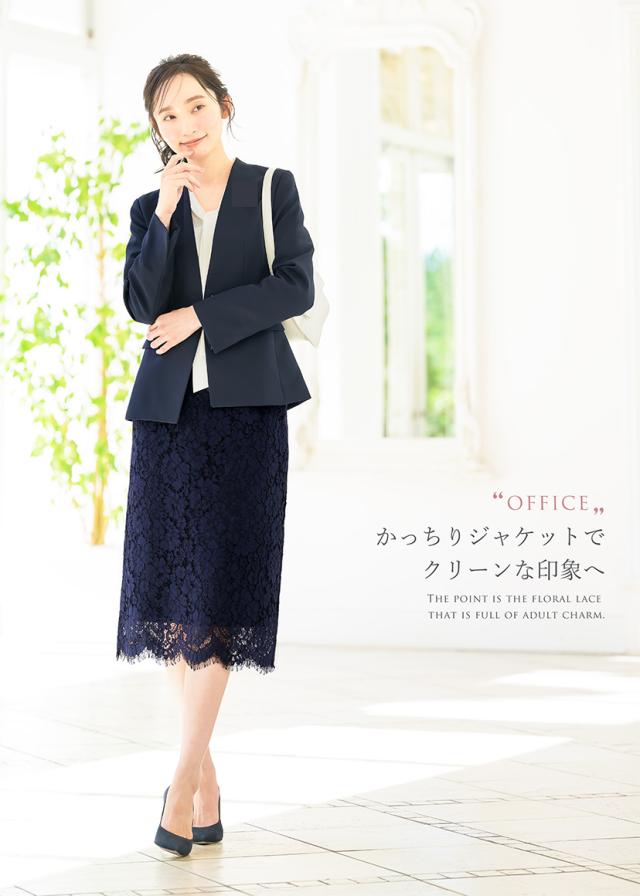 | 花柄のレースを贅沢に使用した、総レースタイトスカート。 裾はスカラップになっておりエレガントなデザインです。 膝が隠れるくらいのやや長めの丈は、大人の上品さをアピール。 裾の後ろ部分入ったスリットが歩行時の足捌きをサポートします。 裏地も付いているため、安心して快適にご着用いただくことが可能です。 裏地は裾丈に合わせて長めになっており、着丈感や裏地の控えバランスにこだわってお作りしました。 通勤やオフィスシーンにはもちろん入学式やお呼ばれなどのオケージョンシーンにも対応するキレイ見えデザイン。 お色は女性らしい柔らかな色味のアイボリー・グレージュと、ベーシックなネイビー・ブラックの4色をご用意しました。 色違いで揃えて、シーンや気分でコーディネートをお楽しみいただくのもオススメです。 | |