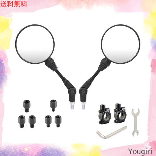 J.H.T バイクミラー 丸型ミラー 可倒式 角度調節 折り畳み式 10mm 正ネジ 汎用 左右セット