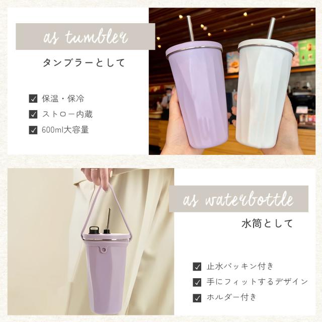 タンブラー ストロー ストロー付きタンブラー こぼれない 蓋付き おしゃれ 収納 水筒 トラベルタンブラー ストロー付き 真空二重構造 保温 保冷 持ち歩き 600ml ステンレス 大容量 二重構造 真空断熱