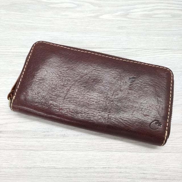 cham ラウンドファスナー レザー 革 ウォレット 長財布 ブラウン レディース チャム【中古】4-0314G◎