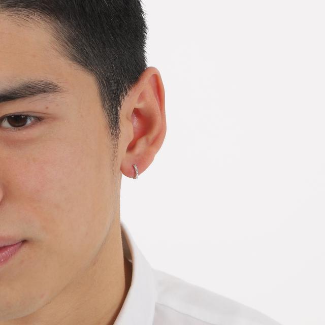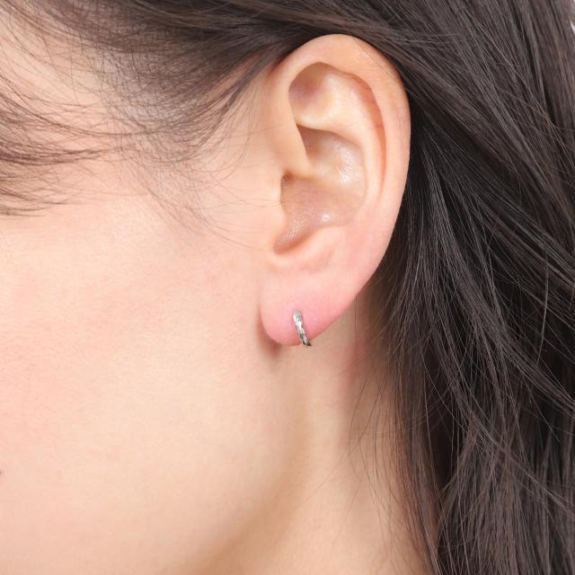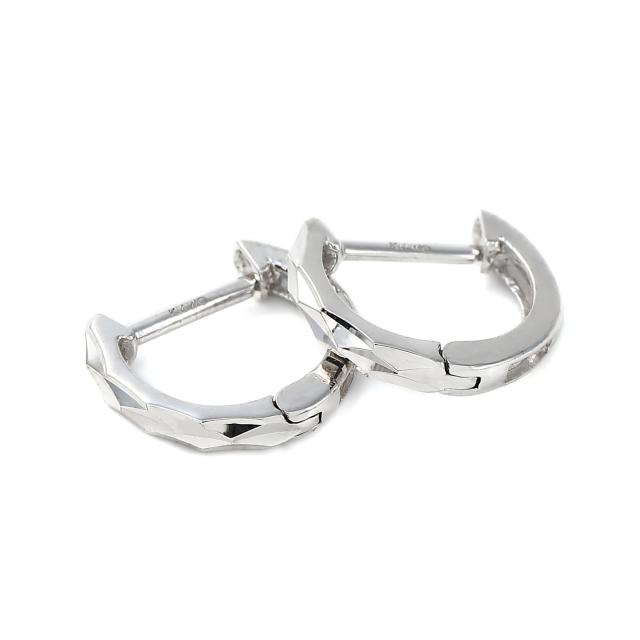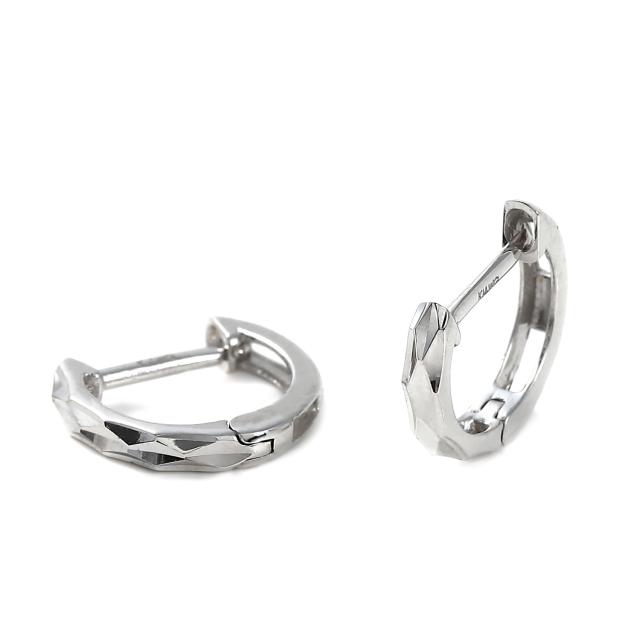 14金 フープピアス ランバスカット リバーシブル ホワイトゴールド メンズ レディース 両耳 リング ピアス