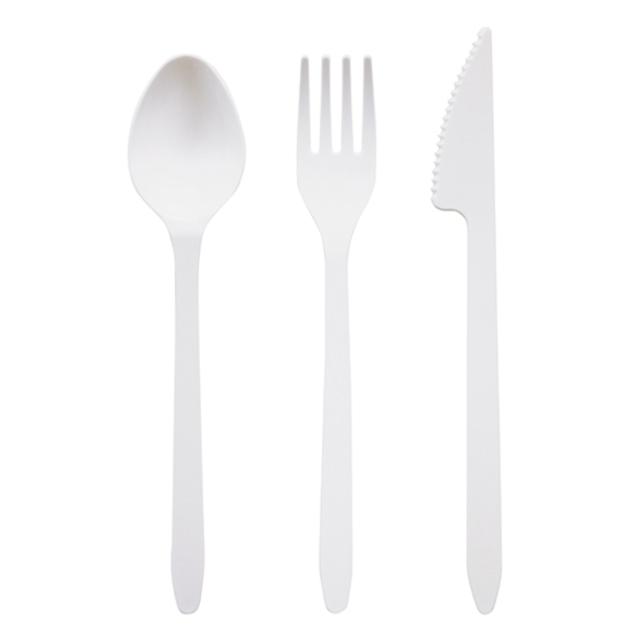 軽くて使いやすい、使い捨てタイプのカトラリーセットです。スプーン、フォーク、ナイフの3種類が入った、各6本ずつの計18本のセットです。