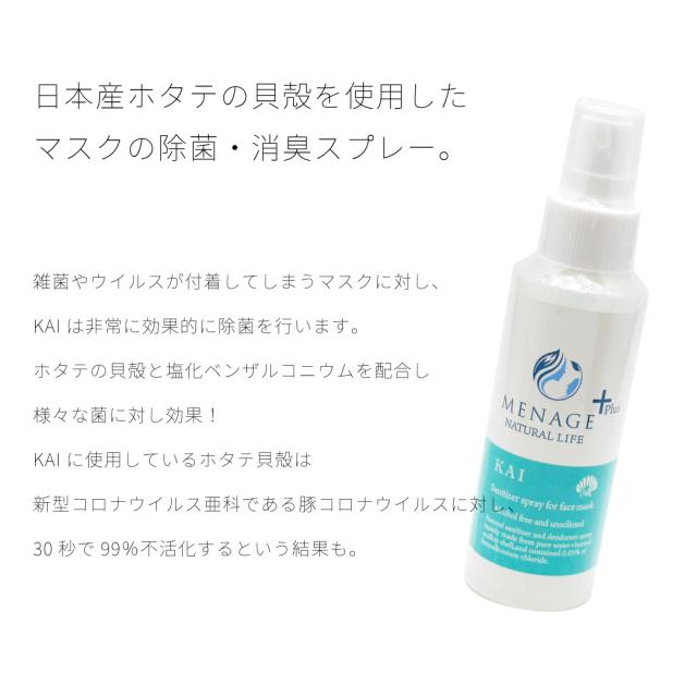 マスク用 除菌 消臭 スプレー MENAGE+ KAI 快 貝殻成分 貝殻焼成 アルコールフリー 香料フリー ホタテ 日本産メナージュプラス ナチュラルライフ