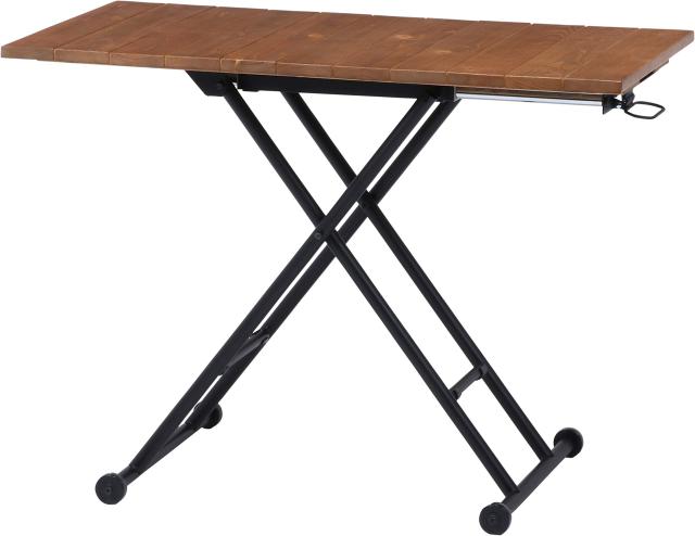 不二貿易 昇降テーブル リビングテーブル 幅100~115×奥行55×高さ14~72cm アンティークブラウン 無段階 昇降式 キャスター付き シルビア