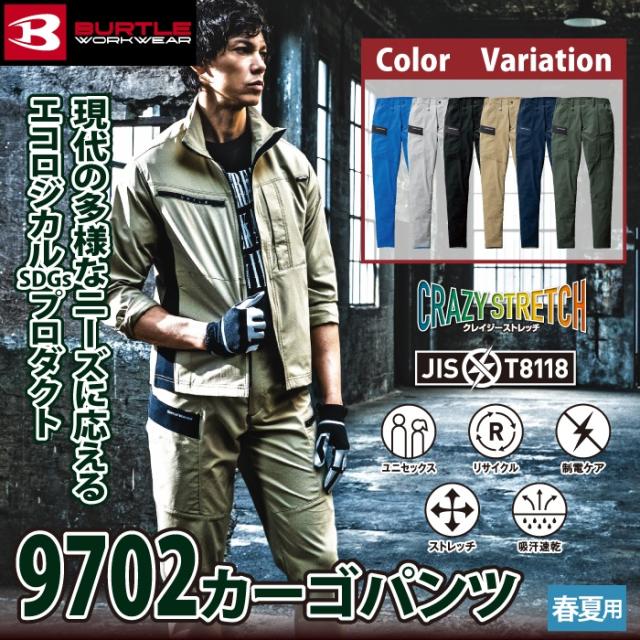 バートル BURTLE 作業服 作業着 作業ズボン 9702 カーゴパンツ S-LL おしゃれ イージーケア JIS適合制電