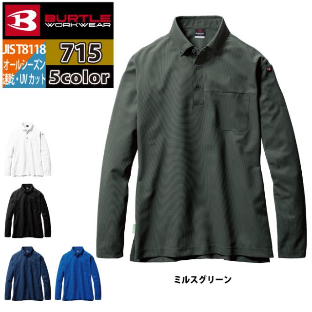 バートル BURTLE 作業服 作業着 インナー 715 長袖BDシャツ S-3L ドライ デオドランド JIS適合制電 UV