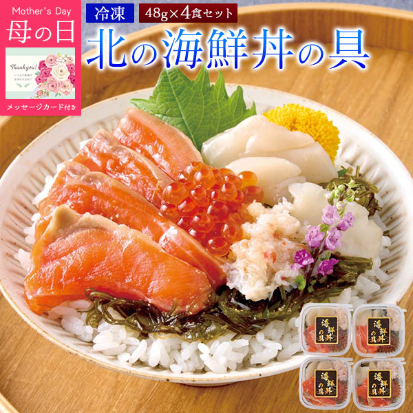 母の日ギフト 2026 海鮮どんぶりの具 4食セット 北の海鮮丼の具 母の日メッセージカード付 イクラ ホタテ ズワイガニ トラウトサーモン いくら 帆立 ほたて 贈り物 プレゼント 母の日の贈り物 母親 お母さん ママ 予約販売 人気 送料無料 クール便【冷凍配送】