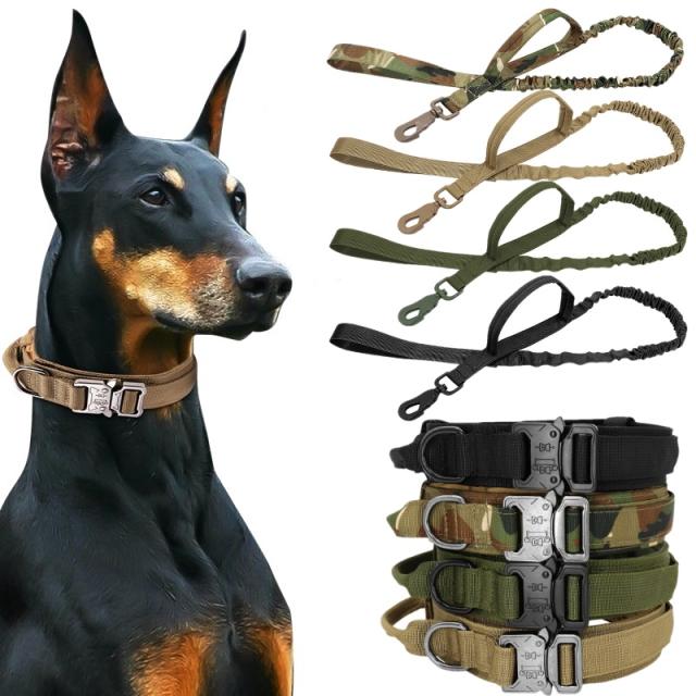 犬 リード 首輪 2点セット ナイロン製 調整可能 ミリタリー 訓練 散歩 引っ張り防止 ハーネス k9 大型犬首輪 中型犬首輪