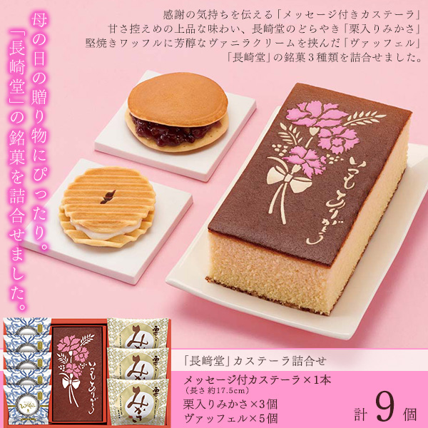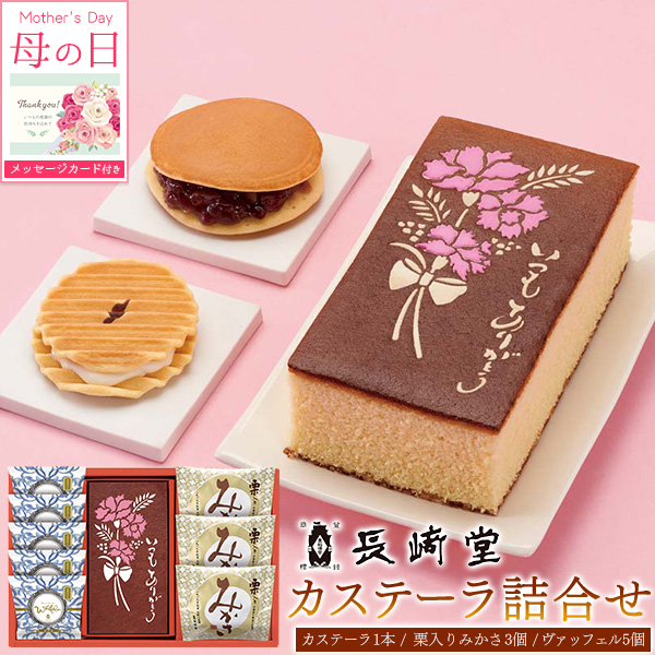 母の日ギフト 2026 長崎堂 カステーラ どら焼き ヴァッフェル 詰め合わせ 母の日メッセージカード付 カステラ どらやき 和菓子 贈り物 プレゼント 感謝 母の日の贈り物 母親 お母さん ママ 予約販売 人気 送料無料 常温