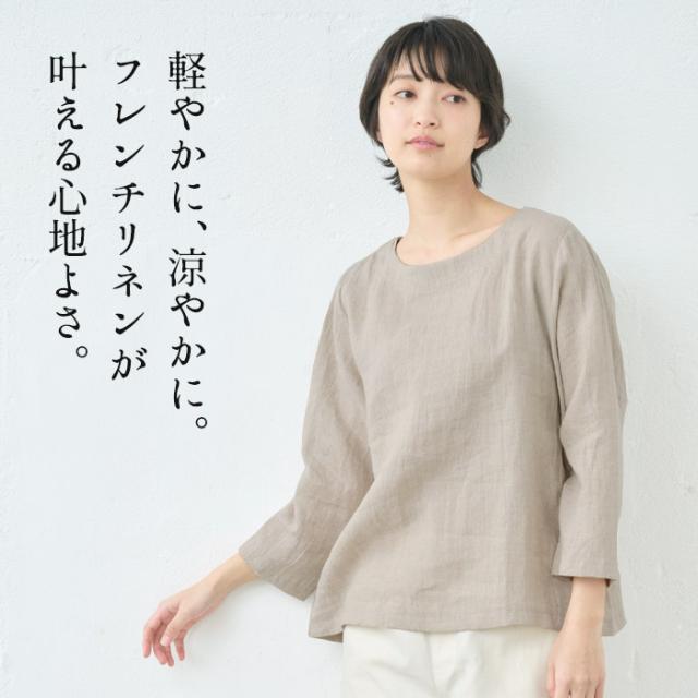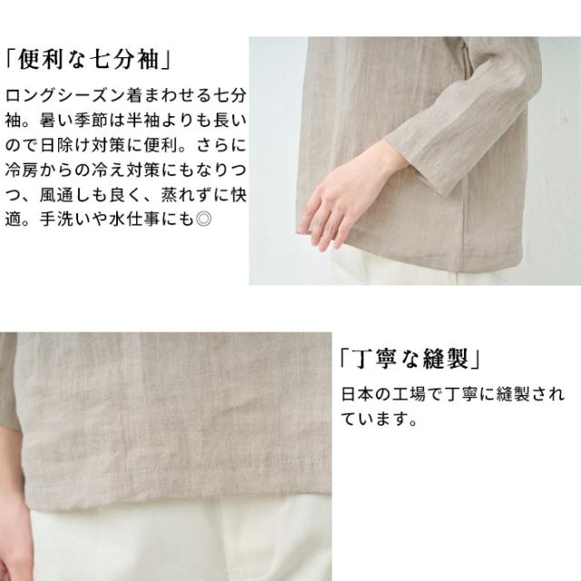 60番手 フレンチリネン100% 七分袖 ブラウス 日本製 / 長袖 レディース 7分袖 40代 50代 60代 30代 女性 ファッション トップス リネン100% 麻100% リネン 麻 涼しい ナチュラル 春 夏