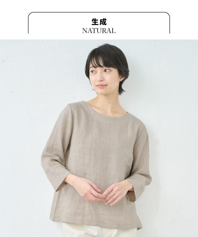 60番手 フレンチリネン100% 七分袖ブラウス