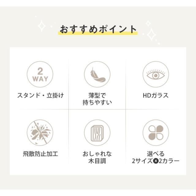 【シンプルでおしゃれなデザイン】木目調のフレームでお部屋に馴染みやすく、リビングや寝室、玄関など場所を選ばず、どこにでも設置いただけます。