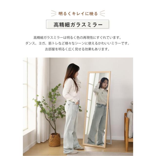 高精細ガラスミラーは明るく色の再現性にすぐれています。ダンス、ヨガ、筋トレなど様々なシーンに使えるかわいいミラーです。お部屋を明るく広く見せる効果もあります。