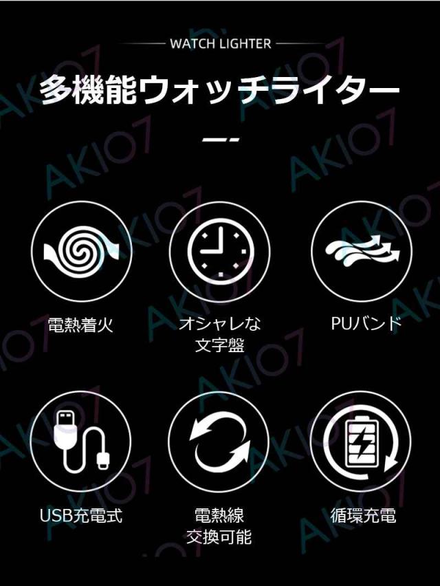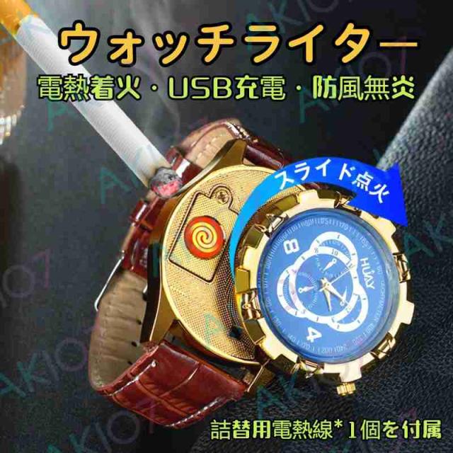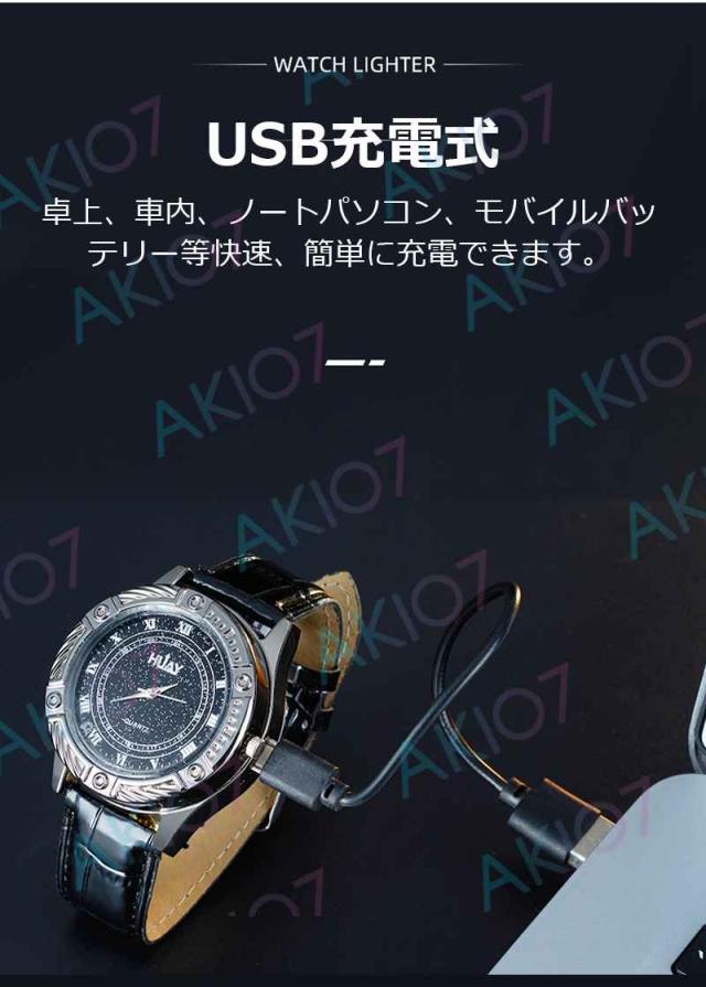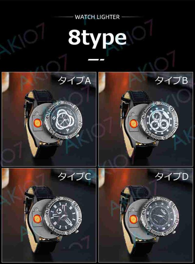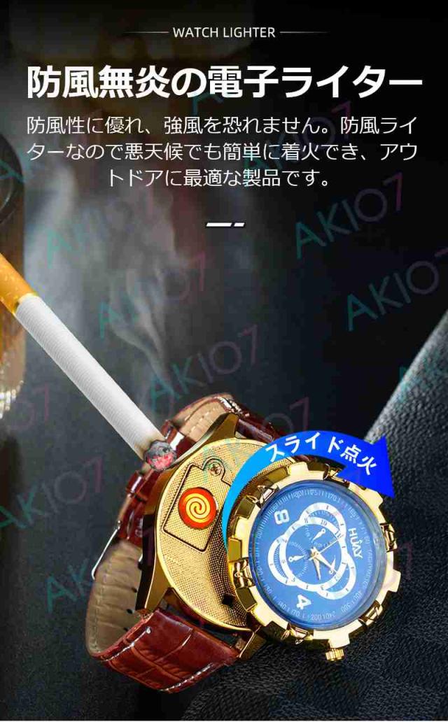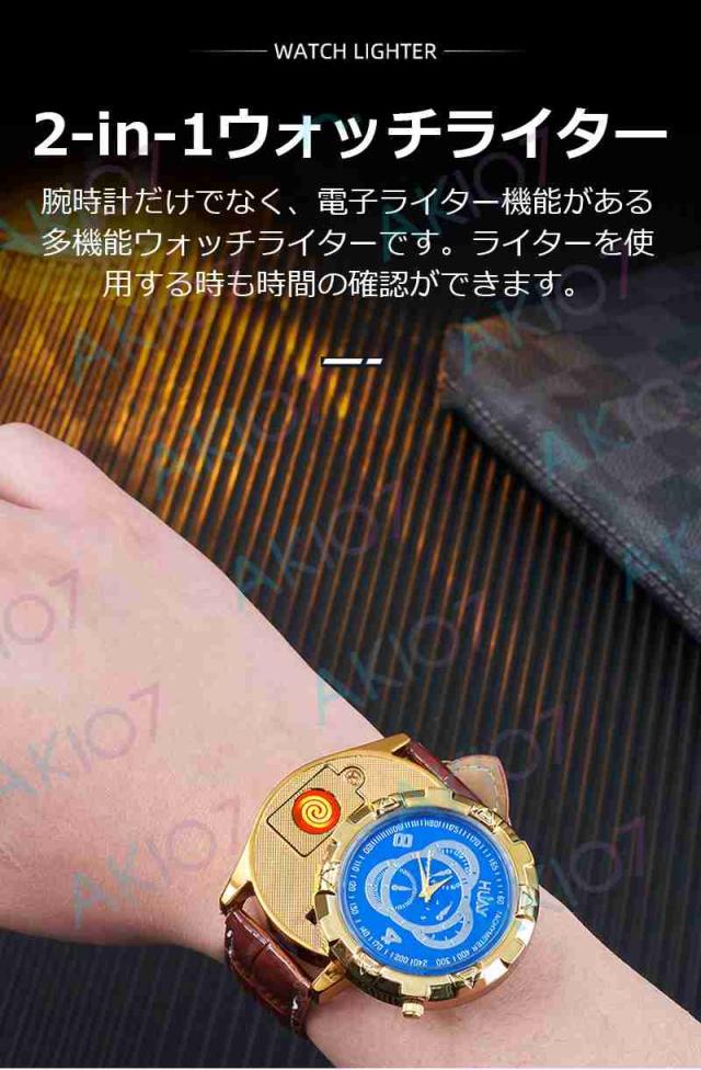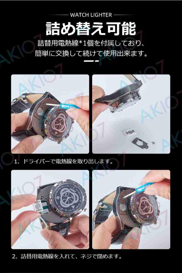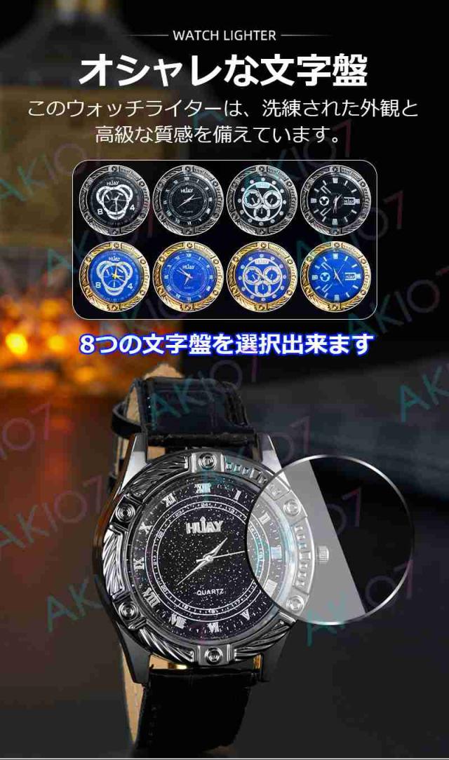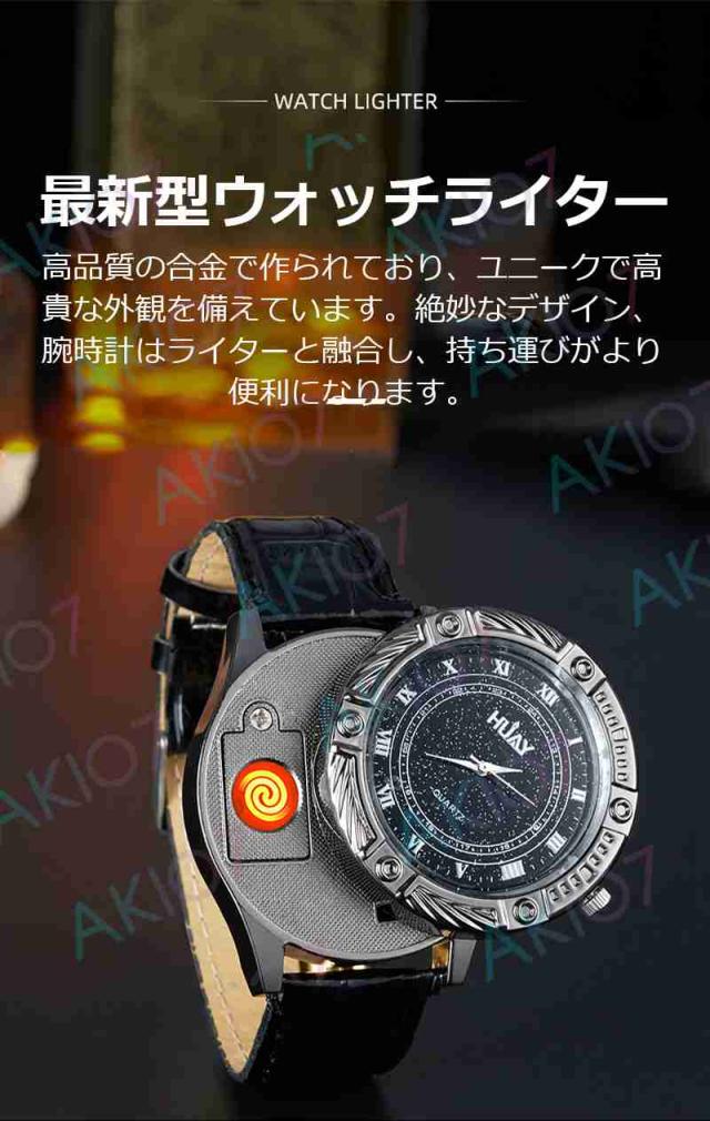 【2in1腕時計ライター】電子ライター 防風 無炎 USB充電式 ウォッチライター 8つ文字盤 詰替用電熱線付属 おしゃれデザイン 父の日 豪華 アウトドア キャンプ