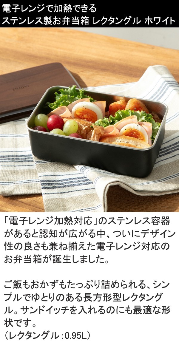 ののじ ステンレス ランチボックス レクタングル ホワイト NLR0950-WB 送料無料 弁当箱 ステンレス製 電子レンジ対応 食洗器対応