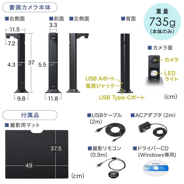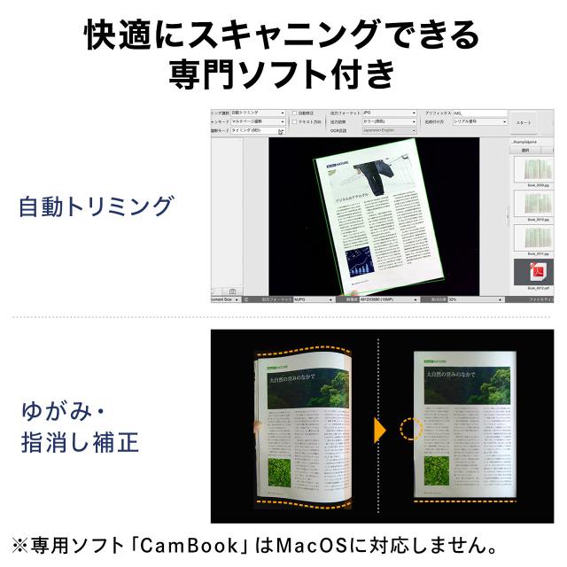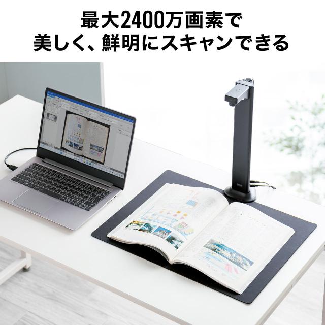 スタンドスキャナー A3対応 書画カメラ機能 自炊 OCR対応 2400万画素 USB接続 高画質[400-CAM110]