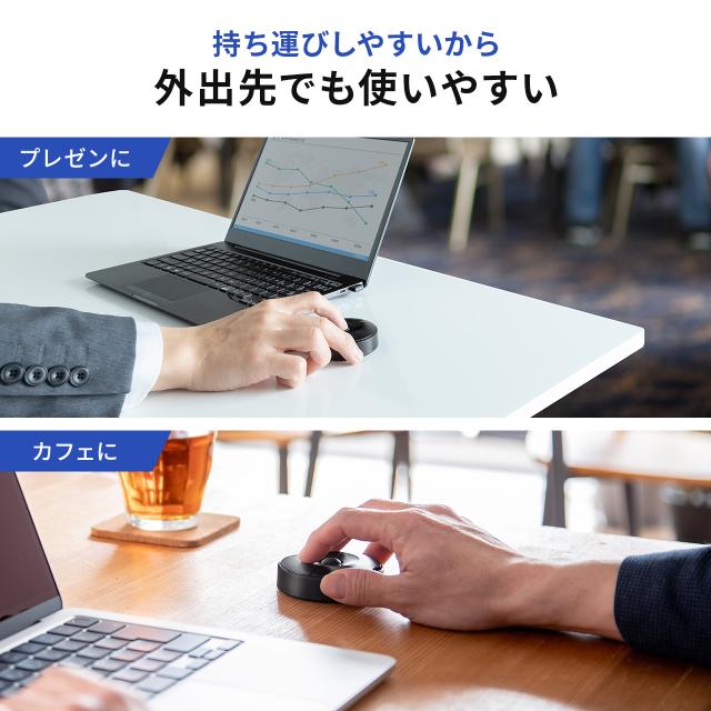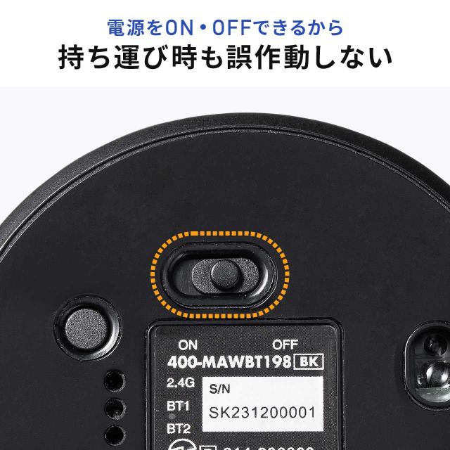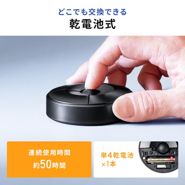 UFOマウス 円盤型 Bluetoothマウス USB Aレシーバー 薄型 持ち運び 出張 コンパクト 小型 乾電池式[400-MAWBT198BK]