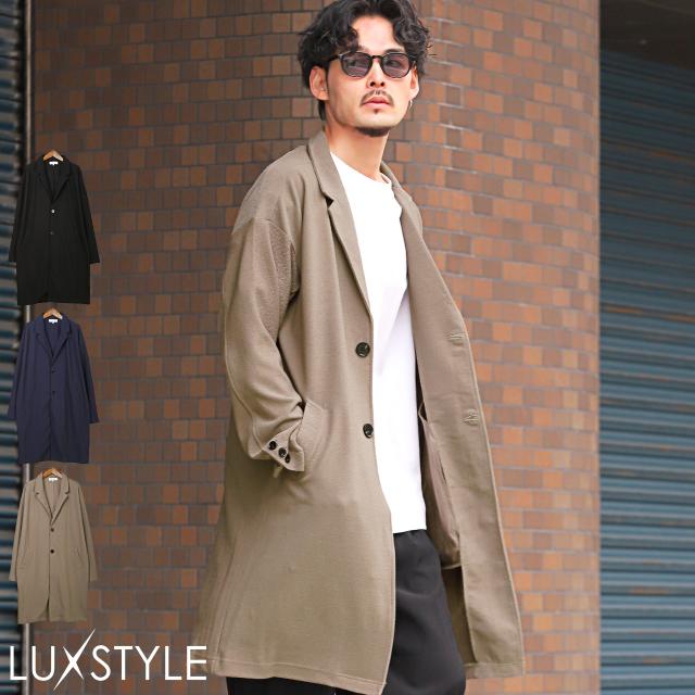 チェスターコート メンズ ロング丈 コート ルーズシルエット ロングコート 梨地 無地 薄手 春秋【梨地ルーズチェスターコート】 aa-2964