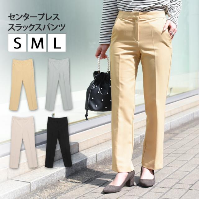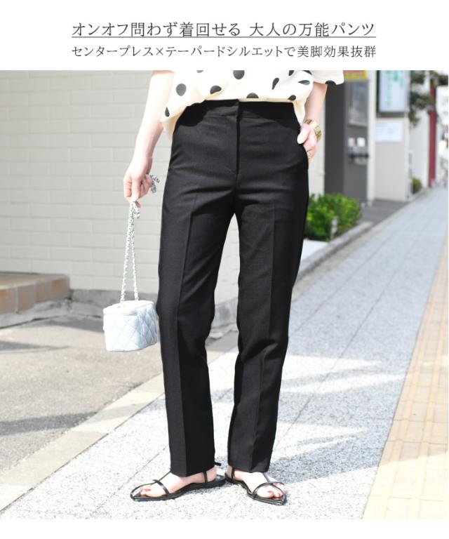 新作 センタープレスベーシックスラックスパンツ レディース ボトムス テーパード ズボン 細見え 美脚 脚長 きれいめ 上品 オフィス OL 通勤 仕事 デイリー 普段使い S M L 低身長 高身長 無地 薄手 春