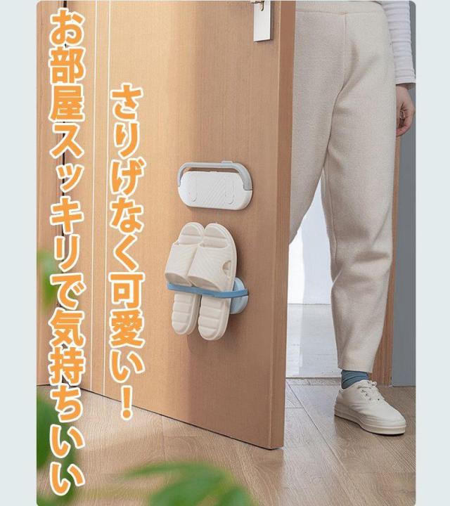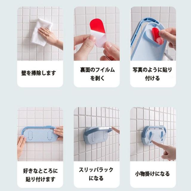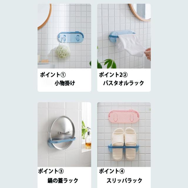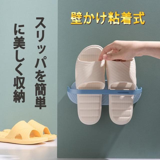 強力粘着タイプ、穴あけ不要で壁へのダメージはありません。場所を問わず、必要な所に自由に貼り付けてガッチリ固定します。玄関やお風呂の散乱しがちなスリッパやサンダルを簡単に収納でき、室内をすっきりします。