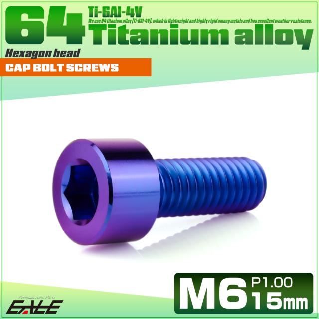チタンボルト M6×15mm P1.0 キャップボルト キャップスクリュー 六角穴付き ボルト パープルブルー JA1922