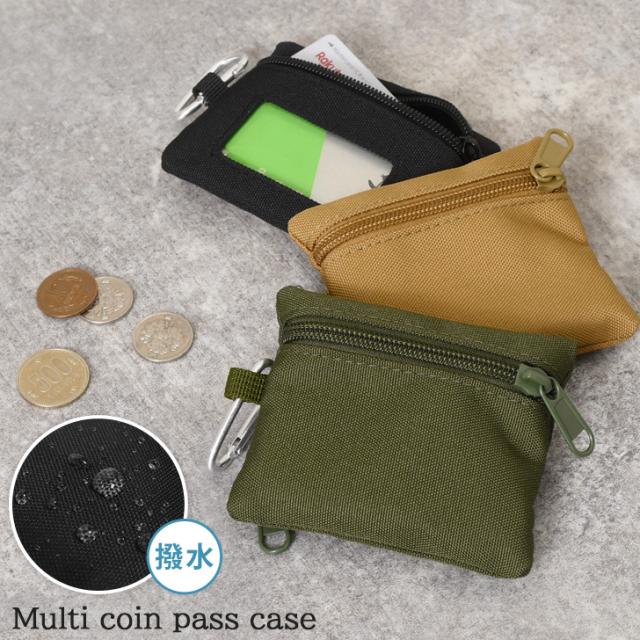 新作 カラビナ付き 撥水 背面クリア マルチ コインパスケース メンズ レディース コインケース 小銭入れ パスケース 定期入れ カードケース キーケース フラグメントケース ミニ財布 コンパクト スリム 無地